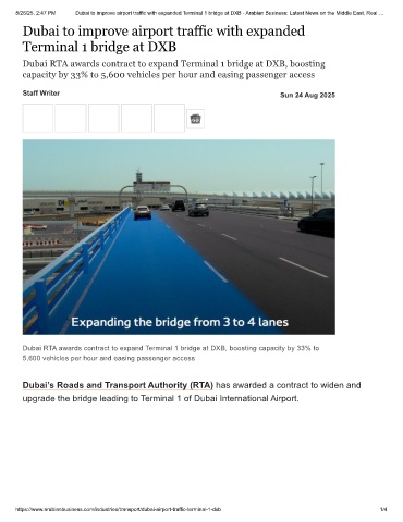 8/26/25, 2:47 PM  Dubai to improve airport traffic with expanded Terminal 1 bridge at DXB - Arabian Business: Latest News on the Middle East, Real …