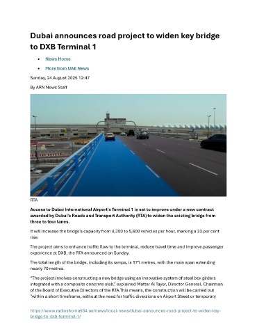 awarded by Dubai's Roads and Transport Authority (RTA) to widen the existing bridge from
