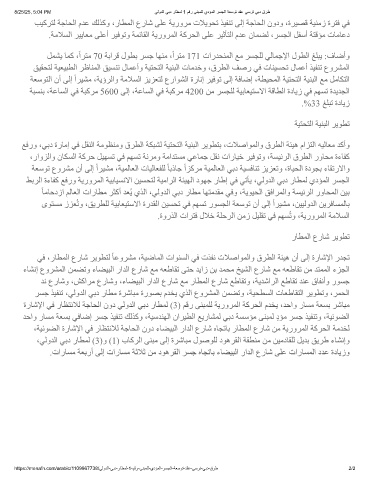 ﻲﻓ ،رﺎﻄﻤﻟا عرﺎﺷ ﺮﯾﻮﻄﺘﻟ ﺎﻋوﺮﺸﻣ ،ﺔﯿﺿﺎﻤﻟا تاﻮﻨﺴﻟا ﻲﻓ تﺬﻔﻧ تﻼﺻاﻮﻤﻟاو قﺮﻄﻟا ﺔﺌﯿھ نأ ﻰﻟإ ةرﺎﺷﻹا رﺪﺠﺗ