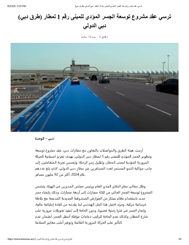 (ﻲﺑد قﺮط) رﺎﻄﻤﻟ 1 ﻢﻗر ﻰﻨﺒﻤﻠﻟ يدﺆﻤﻟا ﺮﺴﺠﻟا ﺔﻌﺳﻮﺗ عوﺮﺸﻣ ﺪﻘﻋ ﻲﺳﺮﺗ