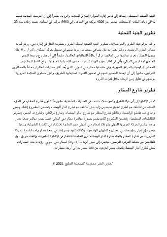 ﻢﻬﺴﺗ ةﺪﻳﺪﺠﻟا ﺔﻌﺳﻮﺘﻟا نأ ﻟإ ًاﺮﻴﺸﻣ ،ﺔﻳؤﺮﻟاو ﺔﻣﻼﺴﻟا ﺰﻳﺰﻌﺘﻟ عراﻮﺸﻟا ةرﺎﻧإ ﺮﻴﻓﻮﺗ ﻟإ ﺔﻓﺎﺿإ ،ﺔﻄﻴﺤﻤﻟا ﺔﻴﺘﺤﺘﻟا ﺔﻴﻨﺒﻟا