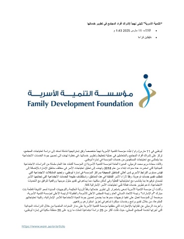 مهتاجايتحا ةيبلتو ،ةيتاراملإا رسلأل ةيعامتجلاا ةايحلا ةدوج نيسحت نمضي امب اهومس تاهيجوت ذيفنت ىلع لمعت ةسسؤملا ن أ ةحضوم