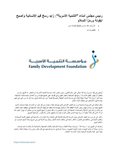 ةمادتس ملا ةيمنتلا قيقحت ىلإ ةيعاسلاو ،تاراملإا ةلود اهانبتت يتلا ةلماشلا ةيناسنلإا ةيؤرلا دسجي يناسنلإا لمعلل دياز موي نأ ىلإ راشأو