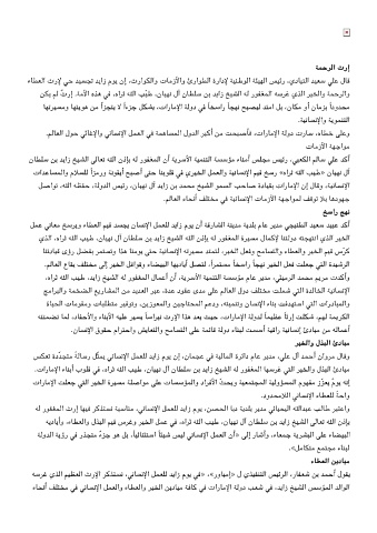 ءﺎﺤﻧأ ﻒﻠﺘﺨﻣ ﻓ ﻧﺎﺴﻧﻹا ﻞﻤﻌﻟاو ءﺎﻄﻌﻟاو ﺮﻴﺨﻟا ﻦﻳدﺎﻴﻣ ﺔﻓﺎﻛ ﻓ تارﺎﻣﻹا ﺔﻟود ﺐﻌﺷ ﻓ ،ﺪﻳاز ﺦﻴﺸﻟا ﺲﺳﺆﻤﻟا ﺪﻟاﻮﻟا