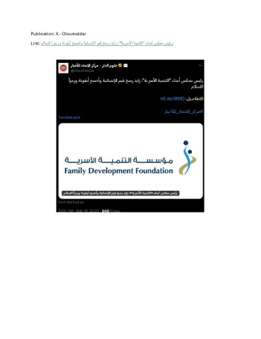 Publication: X - Oloumaldar Link: ملاسلل ًازمرو ةنوقيأ حبصأو ةيناسنلإا ميق خسر دياز :"ةيرسلأا ةيمنتلا" ءانمأ سلجم سيئر