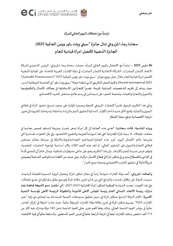 ﺔﻛﺮﺸﻟ يﺬﻴﻔﻨﺘﻟا ﺲيﺋﺮﻟا ،��ورﺰﳌا ءﺎﺟر ةدﺎﻌﺳ ﺖﻠﺼﺣ ، ةأﺮﻤﻠﻟ ﻲﳌﺎﻌﻟا مﻮﻴﻟﺎ ﺑ لﺎﻔﺘﺣﻻا ﻊﻣ ﺎﻨﻣاﺰﺗ – 2025 سرﺎﻣ 06