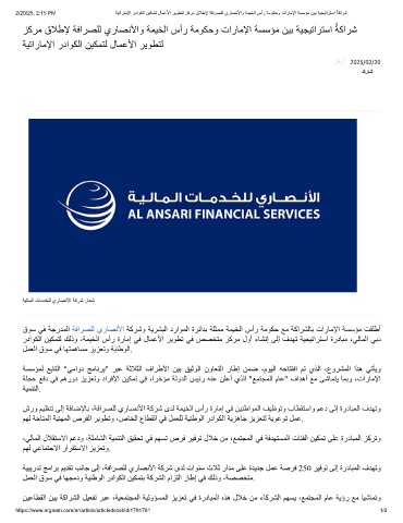 2/20/25, 2:15 PM ﺔﯾﺗارﺎﻣﻹا رداوﻛﻟا نﯾﻛﻣﺗﻟ لﺎﻣﻋﻷا رﯾوطﺗﻟ زﻛرﻣ قﻼطﻹ ﺔﻓارﺻﻠﻟ يرﺎﺻﻧﻷاو ﺔﻣﯾﺧﻟا سأر ﺔﻣوﻛﺣو تارﺎﻣﻹا ﺔﺳﺳؤﻣ نﯾﺑ ﺔﯾﺟﯾﺗارﺗﺳا ٌ ﺔﻛارﺷ