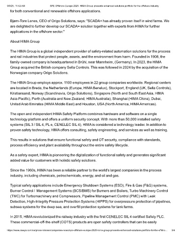 9/9/25, 11:42 AM SPE Offshore Europe 2025: HIMA Group presents enhanced solutions portfolio for the offshore industry