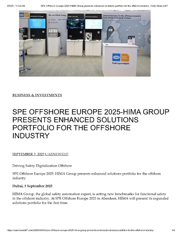 9/9/25, 11:42 AM SPE Offshore Europe 2025-HIMA Group presents enhanced solutions portfolio for the offshore industry | UAE News 24/7