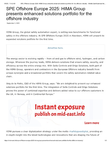 9/9/25, 11:42 AM SPE Offshore Europe 2025: HIMA Group presents enhanced solutions portfolio for the offshore industry - Middle East Business Ne…