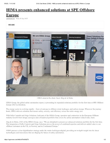 9/9/25, 11:43 AM Oil & Gas News (OGN)- HIMA presents enhanced solutions at SPE Offshore Europe