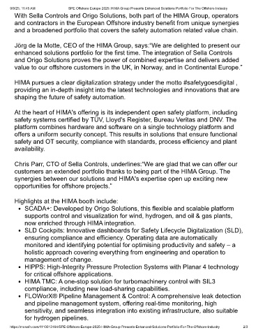 9/9/25, 11:45 AM SPE Offshore Europe 2025: HIMA Group Presents Enhanced Solutions Portfolio For The Offshore Industry