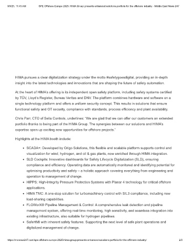 9/9/25, 11:45 AM SPE Offshore Europe 2025: HIMA Group presents enhanced solutions portfolio for the offshore industry - Middle East News 247