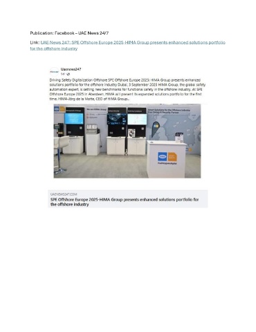 Publication: Facebook – UAE News 24/7 Link: UAE News 247: SPE Offshore Europe 2025-HIMA Group presents enhanced solutions portfolio for the offshore industry