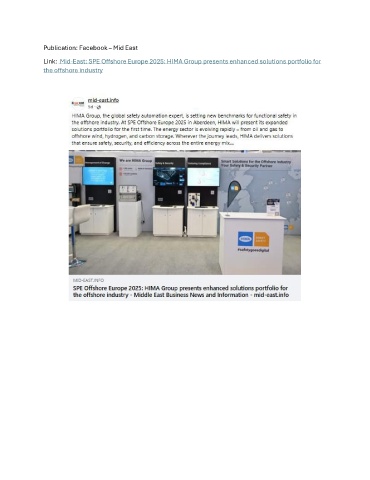 Publication: Facebook – Mid East Link: Mid-East: SPE Offshore Europe 2025: HIMA Group presents enhanced solutions portfolio for the offshore industry