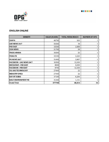 WEBSITE VALUE (IN AED) TOTAL MEDIA REACH NUMBER OF HITS