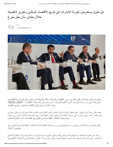 6/23/25, 8:11 AM غرﺑﺳرطﺑ نﺎﺳ ىدﺗﻧﻣ لﻼﺧ ﮫﺗﯾﺳﻓﺎﻧﺗ زﯾزﻌﺗو ﻲﻧطوﻟا دﺎﺻﺗﻗﻻا ﻊﯾوﻧﺗ ﻲﻓ تارﺎﻣﻹا ﺔﺑرﺟﺗ ضرﻌﺗﺳﯾ قوط نﺑا