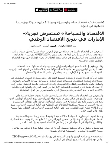 6/23/25, 8:15 AM «ﻲﻧطوﻟا دﺎﺻﺗﻗﻻا ﻊﯾوﻧﺗ ﻲﻓ تارﺎﻣﻹا ﺔﺑرﺟﺗ ضرﻌﺗﺳﺗ «ﺔﺣﺎﯾﺳﻟاو دﺎﺻﺗﻗﻻا