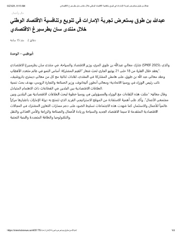 6/23/25, 8:16 AM يدﺎﺻﺗﻗﻻا غرﺑﺳرطﺑ نﺎﺳ ىدﺗﻧﻣ لﻼﺧ ﻲﻧطوﻟا دﺎﺻﺗﻗﻻا ﺔﯾﺳﻓﺎﻧﺗو ﻊﯾوﻧﺗ ﻲﻓ تارﺎﻣﻹا ﺔﺑرﺟﺗ ضرﻌﺗﺳﯾ قوط نﺑ ﷲدﺑﻋ
