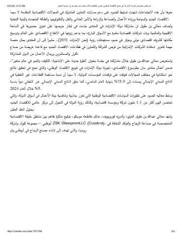 6/23/25, 8:16 AM نطوﻟا ةدﯾرﺟ › غرﺑﺳرطﺑ نﺎﺳ ىدﺗﻧﻣ لﻼﺧ ﮫﺗﯾﺳﻓﺎﻧﺗ زﯾزﻌﺗو ﻲﻧطوﻟا دﺎﺻﺗﻗﻻا ﻊﯾوﻧﺗ ﻲﻓ تارﺎﻣﻹا ﺔﺑرﺟﺗ ضرﻌﺗﺳﯾ قوط نﺑا