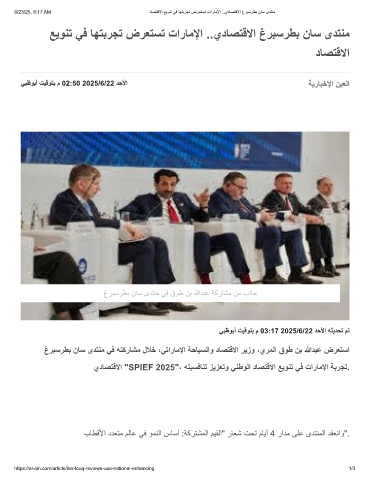 يدﺎﺻﺗﻗﻻا "SPIEF 2025"، ﮫﺗﯾﺳﻓﺎﻧﺗ زﯾزﻌﺗو ﻲﻧطوﻟا دﺎﺻﺗﻗﻻا ﻊﯾوﻧﺗ ﻲﻓ تارﺎﻣﻹا ﺔﺑرﺟﺗ.