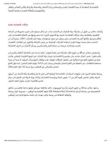 6/23/25, 8:18 AM غرﺑﺳرطﺑ نﺎﺳ ىدﺗﻧﻣ لﻼﺧ ﮫﺗﯾﺳﻓﺎﻧﺗ زﯾزﻌﺗو ﻲﻧطوﻟا دﺎﺻﺗﻗﻻا ﻊﯾوﻧﺗ ﻲﻓ تارﺎﻣﻹا ﺔﺑرﺟﺗ ضرﻌﺗﺳﯾ قوط نﺑا - Nas News UAE