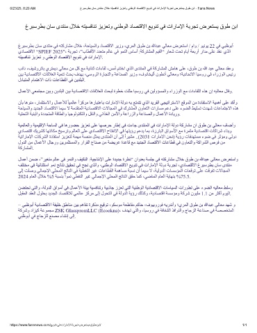 6/23/25, 8:20 AM غرﺑﺳرطﺑ نﺎﺳ ىدﺗﻧﻣ لﻼﺧ ﮫﺗﯾﺳﻓﺎﻧﺗ زﯾزﻌﺗو ﻲﻧطوﻟا دﺎﺻﺗﻗﻻا ﻊﯾوﻧﺗ ﻲﻓ تارﺎﻣﻹا ﺔﺑرﺟﺗ ضرﻌﺗﺳﯾ قوط نﺑا - Fana News