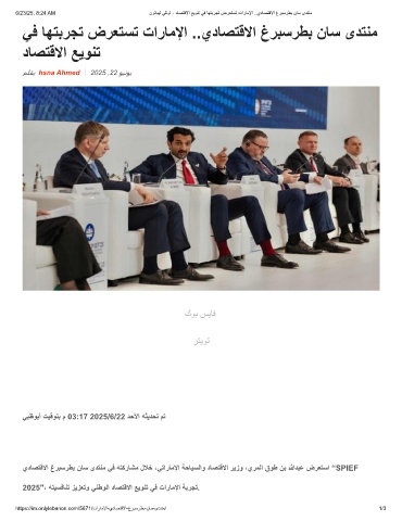 يدﺎﺻﺗﻗﻻا غرﺑﺳرطﺑ نﺎﺳ ىدﺗﻧﻣ ﻲﻓ ﮫﺗﻛرﺎﺷﻣ لﻼﺧ ،ﻲﺗارﺎﻣﻹا ﺔﺣﺎﯾﺳﻟاو دﺎﺻﺗﻗﻻا رﯾزو ،يرﻣﻟا قوط نﺑ ﷲدﺑﻋ ضرﻌﺗﺳا “SPIEF