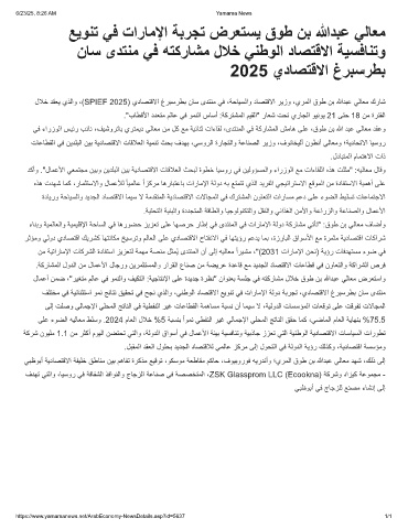 لﻼﺧ دﻘﻌﯾ يذﻟاو ،(SPIEF 2025) يدﺎﺻﺗﻗﻻا غرﺑﺳرطﺑ نﺎﺳ ىدﺗﻧﻣ ﻲﻓ ،ﺔﺣﺎﯾﺳﻟاو دﺎﺻﺗﻗﻻا رﯾزو ،يرﻣﻟا قوط نﺑ ﷲدﺑﻋ ﻲﻟﺎﻌﻣ كرﺎﺷ