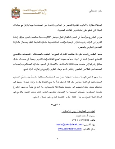 ىلإ ً لاوصو ،اهريودت ةداعاو اهزرفو تايافنلا عمج نم ً اندب لحارملا ةفاك يلذ يطويو ، ةلودلا يف ةئيبلل قيدصلا