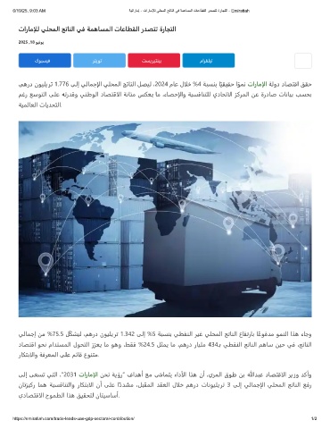 6/19/25, 9:03 AM ﺔﯾﺗارﺎﻣإ - تارﺎﻣﻺﻟ ﻲﻠﺣﻣﻟا ﺞﺗﺎﻧﻟا ﻲﻓ ﺔﻣھﺎﺳﻣﻟا تﺎﻋﺎطﻘﻟا ردﺻﺗﺗ ةرﺎﺟﺗﻟا - Emiratiah