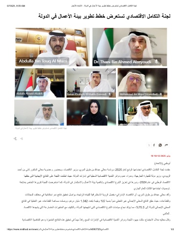 دﻣﺣأ نﺑ ﻲﻧﺎﺛ روﺗﻛدﻟا ﻲﻟﺎﻌﻣ ﺔﯾوﺿﻋو روﺿﺣﺑو ،دﺎﺻﺗﻗﻻا رﯾزو ،يرﻣﻟا قوط نﺑ ﷲدﺑﻋ ﻲﻟﺎﻌﻣ ﺔﺳﺎﺋرﺑ ،2025 مﺎﻌﻟ ﻊﺑارﻟا ﺎﮭﻋﺎﻣﺗﺟا يدﺎﺻﺗﻗﻻا لﻣﺎﻛﺗﻟا ﺔﻧﺟﻟ تدﻘﻋ
