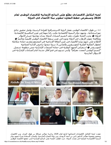 ﻲﻨطﻮﻟا دﺎﺼﺘﻗﻻا ﺎﮫﻘﻘﺣ ﻲﺘﻟا ﺔﯿﺑﺎﺠﻳﻹا ﺞﺋﺎﺘﻨﻟا ﻰﻠﻋ ﺔﻨﺠﻠﻟا ﺖﻌﻠطا ﺚﯿﺣ ،ﺔﻟوﺪﻟا تارﺎﻣإ ﻲﻓ ﺔﯿﻠﺤﻤﻟا ﺔﻳدﺎﺼﺘﻗﻻا ﺔﯿﻤﻨﺘﻟا