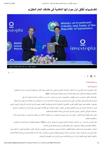 ﺎﯾﺑوﺗﺳﻔﻧإ» تاراوﺣ نﻣ ﺔﺧﺳﻧ لوأ مﯾظﻧﺗ ﻲﻓ نوﺎﻌﺗﻟا فدﮭﺑ ،نﺎﺗﺳﻛﺑزوأ ﺔﯾروﮭﻣﺟ ﻲﻓ ةرﺎﺟﺗﻟاو ﺔﻋﺎﻧﺻﻟاو رﺎﻣﺛﺗﺳﻻا ةرازو ﻊﻣ مھﺎﻔﺗ ةرﻛذﻣ «ﺎﯾﺑوﺗﺳﻔﻧإ» تﻌ ّ ﻗو