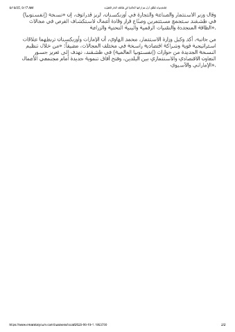 (ﺎﯿﺑﻮﺘﺴﻔﻧإ) ﺔﺨﺴﻧ» نإ ،فﻮﺗارﺪﻗ ﺰﻳﺰﻟ ،نﺎﺘﺴﻜﺑزوأ ﻲﻓ ةرﺎﺠﺘﻟاو ﺔﻋﺎﻨﺼﻟاو رﺎﻤﺜﺘﺳﻻا ﺮﻳزو لﺎﻗو