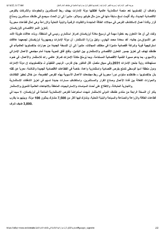 ءوﺿ ﻲﻓ ،لﺎﻣﻋﻷاو رﺎﻣﺛﺗﺳﻼﻟ دﺋار ﻲﻣﻟﺎﻋ زﻛرﻣﻛ تارﺎﻣﻹا ﺔﻧﺎﻛﻣ ﺦّﺳرُﯾ ﺎﻣﺑو ،ﺔﻣادﺗﺳﻣﻟا ﺔﯾدﺎﺻﺗﻗﻻا ﺔﯾﻣﻧﺗﻟا ةرﯾﺳﻣ مﻋدﯾ ﺎﻣﺑ ،يوﯾﺳﻵاو