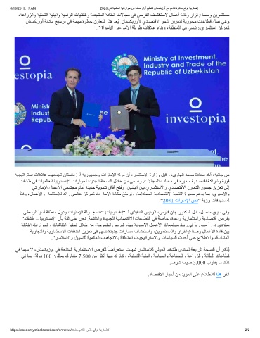 ﺔﯿﺠﯿﺗاﺮﺘﺳا تﺎﻗﻼﻋ ﺎﻤﮭﻌﻤﺠﺗ نﺎﺘﺴﻜﺑزوأ ﺔﯾرﻮﮭﻤﺟو تارﺎﻣﻹا ﺔﻟود نأ ،رﺎﻤﺜﺘﺳﻻا ةرازو ﻞﯿﻛو ،يوﺎﮭﻟا ﺪﻤﺤﻣ ةدﺎﻌﺳ ﺪﻛأ ،ﮫﺒﻧﺎﺟ ﻦﻣ