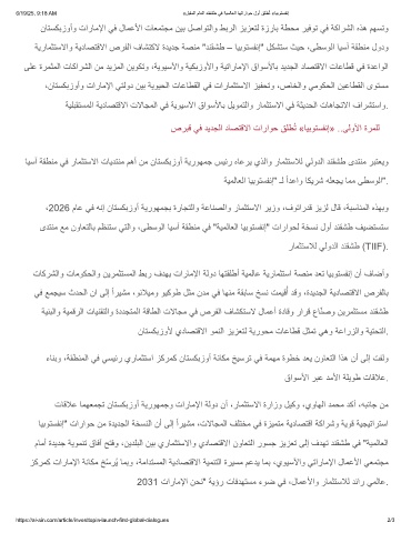 2031 تارﺎﻣﻹا نﺣﻧ" ﺔﯾؤر تﺎﻓدﮭﺗﺳﻣ ءوﺿ ﻲﻓ ،لﺎﻣﻋﻷاو رﺎﻣﺛﺗﺳﻼﻟ دﺋار ﻲﻣﻟﺎﻋ.