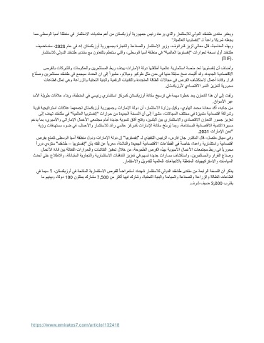 ةيوق ةيجيتارتسا تاقلاع امهعمجت ناتسكبزوأ ةيروهمجو تاراملإا ةلود نأ ،رامثتسلاا ةرازو ليكو ،يواهلا دمحم ةداعس دكأ ،هبناج نم