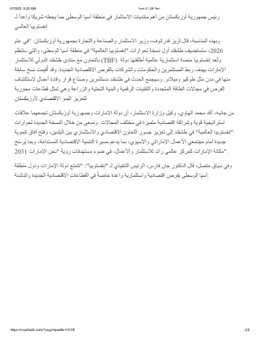 2031 تارﺎﻣﻹا ﻦﺤﻧ" ﺔﯾؤر تﺎﻓﺪﮭﺘﺴﻣ ءﻮﺿ ﻲﻓ ،لﺎﻤﻋﻷاو رﺎﻤﺜﺘﺳﻼﻟ ﺪﺋار ﻲﻤﻟﺎﻋ ﺰﻛﺮﻤﻛ تارﺎﻣﻹا ﺔﻧﺎﻜﻣ".