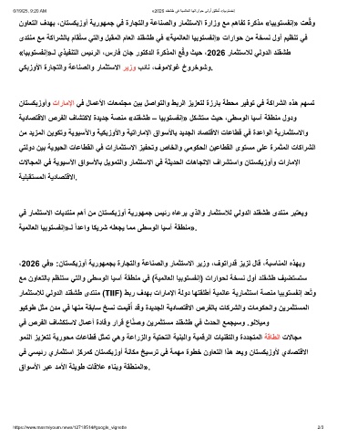 ،2026 ﻲﻓ» :نﺎﺗﺳﻛﺑزوأ ﺔﯾروﮭﻣﺟﺑ ةرﺎﺟﺗﻟاو ﺔﻋﺎﻧﺻﻟاو رﺎﻣﺛﺗﺳﻻا رﯾزو ،فوﺗاردﻗ زﯾزﻟ لﺎﻗ ،ﺔﺑﺳﺎﻧﻣﻟا هذﮭﺑو