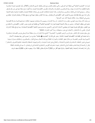 ."2031 تارﺎﻣﻹا نﺣﻧ" ﺔﯾؤر تﺎﻓدﮭﺗﺳﻣ ءوﺿ ﻲﻓ ،لﺎﻣﻋﻷاو رﺎﻣﺛﺗﺳﻼﻟ دﺋار ﻲﻣﻟﺎﻋ زﻛرﻣﻛ