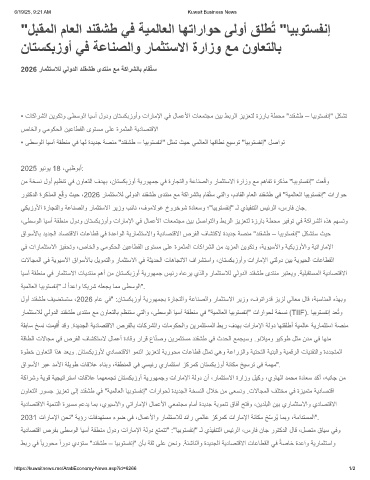 روﺗﻛدﻟا ةرﻛذﻣﻟا ﻊ ّ ﻗو ثﯾﺣ ،2026 رﺎﻣﺛﺗﺳﻼﻟ ﻲﻟودﻟا دﻧﻘﺷط ىدﺗﻧﻣ ﻊﻣ ﺔﻛارﺷﻟﺎﺑ مﺎﻘُﺗﺳ ﻲﺗﻟاو ،مدﺎﻘﻟا مﺎﻌﻟا دﻧﻘﺷط ﻲﻓ "ﺔﯾﻣﻟﺎﻌﻟا ﺎﯾﺑوﺗﺳﻔﻧإ" تاراوﺣ