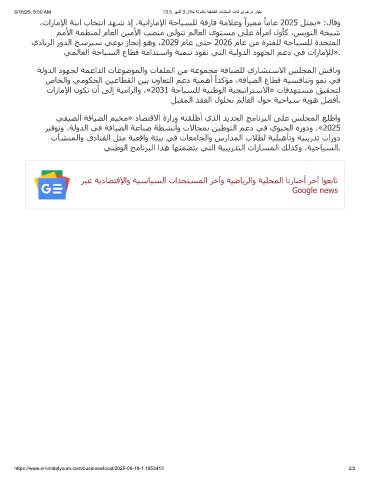 ،تارﺎﻣﻹا ﺔﻨﺑا بﺎﺨﺘﻧا ﺪﮫﺷ ذإ ،ﺔﯿﺗارﺎﻣﻹا ﺔﺣﺎﯿﺴﻠﻟ ﺔﻗرﺎﻓ ﺔﻣﻼﻋو اﺰﯿﻤﻣ ﺎﻣﺎﻋ 2025 ﻞﺜﻤﻳ» :لﺎﻗو