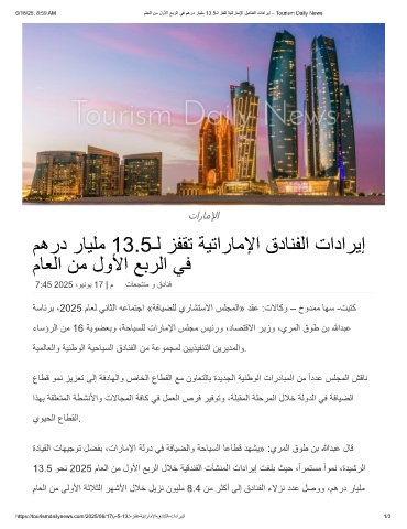 6/18/25, 8:59 AM مﺎﻌﻟا نﻣ لوﻷا ﻊﺑرﻟا ﻲﻓ مھرد رﺎﯾﻠﻣ 13.5ـﻟ زﻔﻘﺗ ﺔﯾﺗارﺎﻣﻹا قدﺎﻧﻔﻟا تادارﯾإ – Tourism Daily News