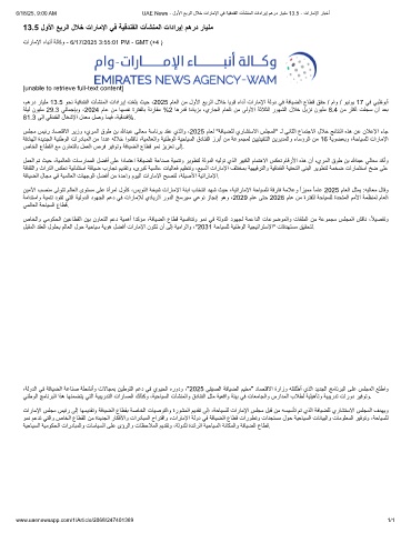 ،مھرد رﺎﯾﻠﻣ 13.5 وﺣﻧ ﺔﯾﻗدﻧﻔﻟا تﺂﺷﻧﻣﻟا تادارﯾإ تﻐﻠﺑ ثﯾﺣ ،2025 مﺎﻌﻟا نﻣ لوﻷا ﻊﺑرﻟا لﻼﺧ ﺎﯾوﻗ ءادأ تارﺎﻣﻹا ﺔﻟود ﻲﻓ ﺔﻓﺎﯾﺿﻟا عﺎطﻗ ﻖﻘﺣ / ماو / وﯾﻧوﯾ 17 ﻲﻓ ﻲﺑظوﺑأ