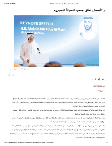 ﺞﻣﺎﻧرﺑ وھو ،«2025 ﻲﻔﯾﺻﻟا ﺔﻓﺎﯾﺿﻟا مﯾﺧﻣ» ،دﺎﺻﺗﻗﻻا ةرازو تﻘﻠطأ ،ﺔﺣﺎﯾﺳﻠﻟ تارﺎﻣﻹا سﻠﺟﻣ سﯾﺋر دﺎﺻﺗﻗﻻا رﯾزو ،يرﻣﻟا قوط نﺑ ﷲ دﺑﻋ ﻲﻟﺎﻌﻣ روﺿﺣﺑ