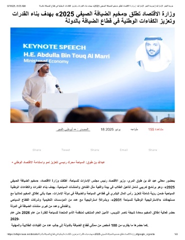 6/18/25, 8:03 AM ﺔﻟودﻟﺎﺑ ﺔﻓﺎﯾﺿﻟا عﺎطﻗ ﻲﻓ ﺔﯾﻧطوﻟا تاءﺎﻔﻛﻟا زﯾزﻌﺗو تاردﻘﻟا ءﺎﻧﺑ فدﮭﺑ «2025 ﻲﻔﯾﺻﻟا ﺔﻓﺎﯾﺿﻟا مﯾﺧﻣ» ﻖﻠطﺗ دﺎﺻﺗﻗﻻا ةرازو | ﮫﯾﺗارﺎﻣﻹا رﺟﻔﻟا ةدﯾرﺟ | ﮫﯾﺗارﺎﻣﻹا رﺟﻔﻟا ةدﯾرﺟ