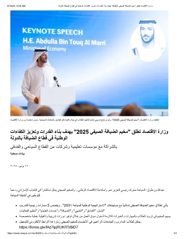 6/18/25, 8:04 AM ﺔﻟودﻟﺎﺑ ﺔﻓﺎﯾﺿﻟا عﺎطﻗ ﻲﻓ ﺔﯾﻧطوﻟا تاءﺎﻔﻛﻟا زﯾزﻌﺗو تاردﻘﻟا ءﺎﻧﺑ فدﮭﺑ "2025 ﻲﻔﯾﺻﻟا ﺔﻓﺎﯾﺿﻟا مﯾﺧﻣ" ﻖﻠطﺗ دﺎﺻﺗﻗﻻا ةرازو