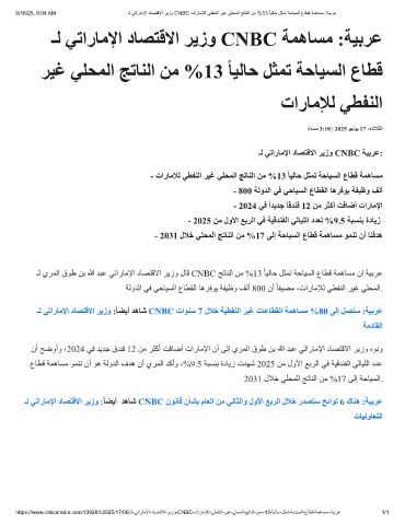 6/18/25, 8:04 AM ـﻟ ﻲﺗارﺎﻣﻹا دﺎﺻﺗﻗﻻا رﯾزو CNBC تارﺎﻣﻺﻟ ﻲطﻔﻧﻟا رﯾﻏ ﻲﻠﺣﻣﻟا ﺞﺗﺎﻧﻟا نﻣ %13 ً ﺎﯾﻟﺎﺣ لﺛﻣﺗ ﺔﺣﺎﯾﺳﻟا عﺎطﻗ ﺔﻣھﺎﺳﻣ :ﺔﯾﺑرﻋ